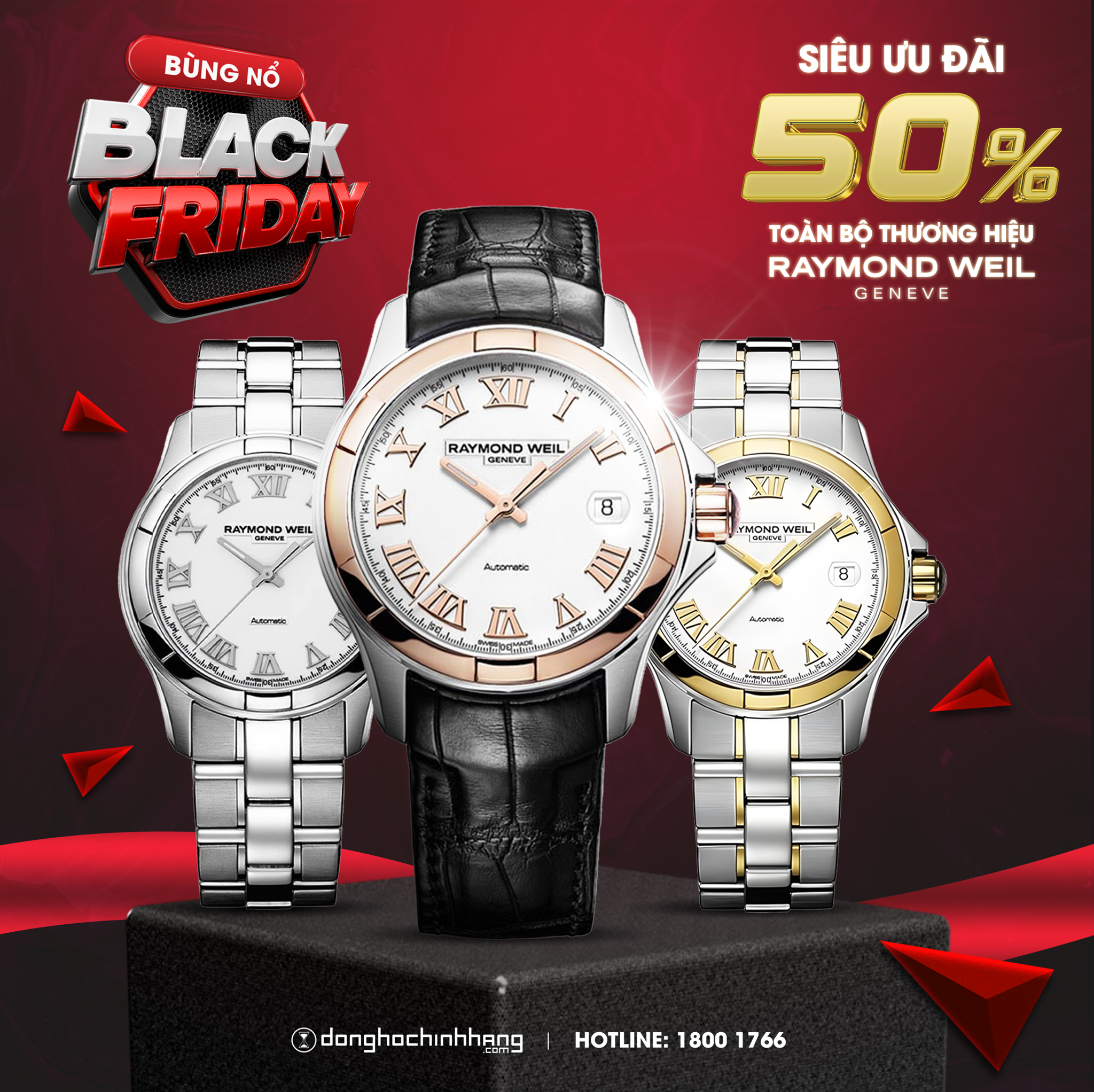 Tại Donghochinhhang.com, sự kiện Black Friday đồng hồ 2025 đánh dấu đợt sale đồng hồ chính hãng lớn nhất trong năm. Hàng trăm mẫu đồng hồ từ các thương hiệu nổi tiếng như Raymond Weil, Movado, Michel Herbelin, Elle... đang được giảm giá sâu toàn bộ 50%.