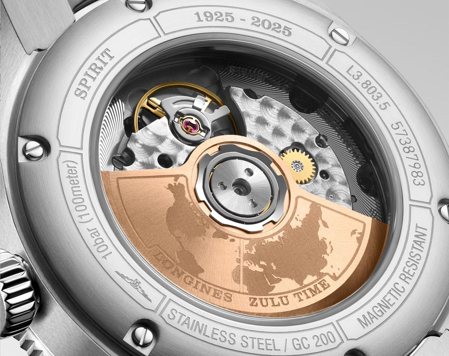 Longines GMT sử dụng Caliber L844.4, bộ máy automatic được chứng nhận COSC Chronometer, mang lại độ chính xác ±5 giây/ngày và 72 giờ trữ cót. Cơ chế GMT độc lập cho phép điều chỉnh giờ thứ hai linh hoạt – một ưu điểm hiếm thấy trong tầm giá.