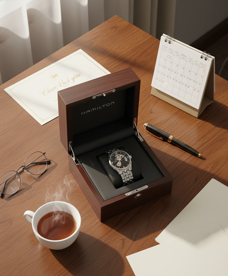Trong mùa lễ hội cuối năm, việc lựa chọn một món quà mang giá trị trang trọng dành cho doanh nhân luôn đòi hỏi sự tinh tế và hiểu biết về phong cách người nhận. Đồng hồ là món quà lý tưởng mang ý nghĩa của thời gian, thành công và sự gắn kết. Trong phân khúc 30 triệu, Hamilton Jazzmaster, đặc biệt là các phiên bản Open Heart, trở thành lựa chọn nổi bật nhờ vẻ đẹp nghệ thuật, độ hoàn thiện cao và giá trị thương hiệu đến từ Thụy Sĩ.