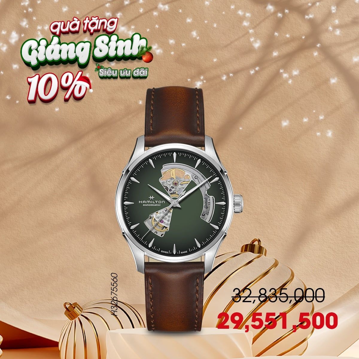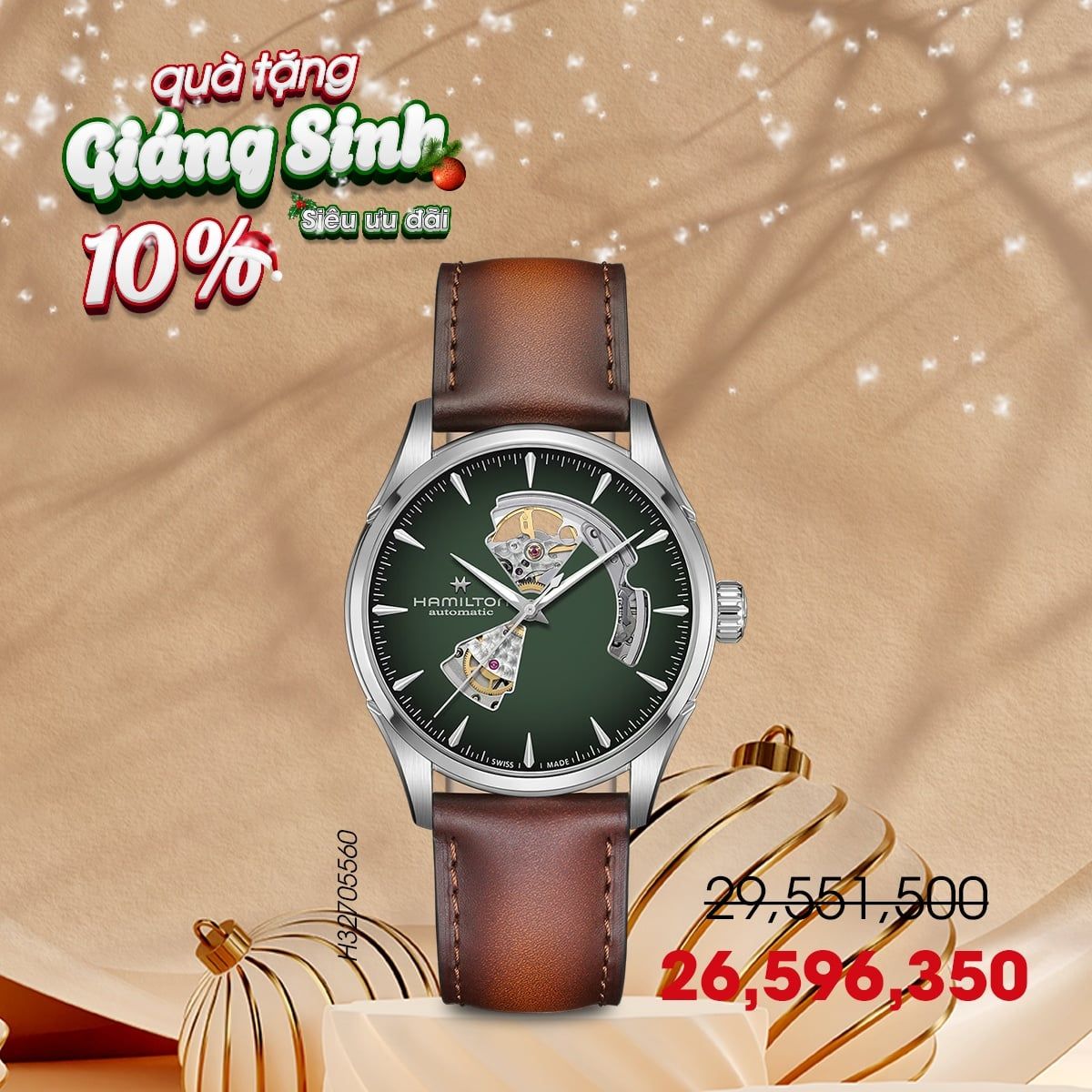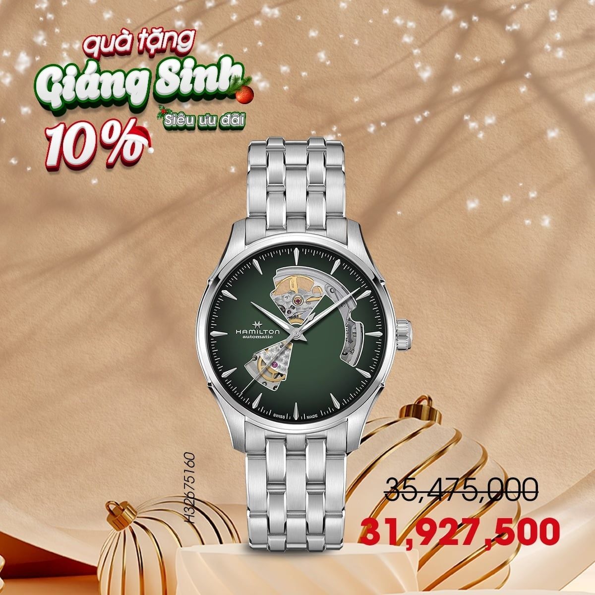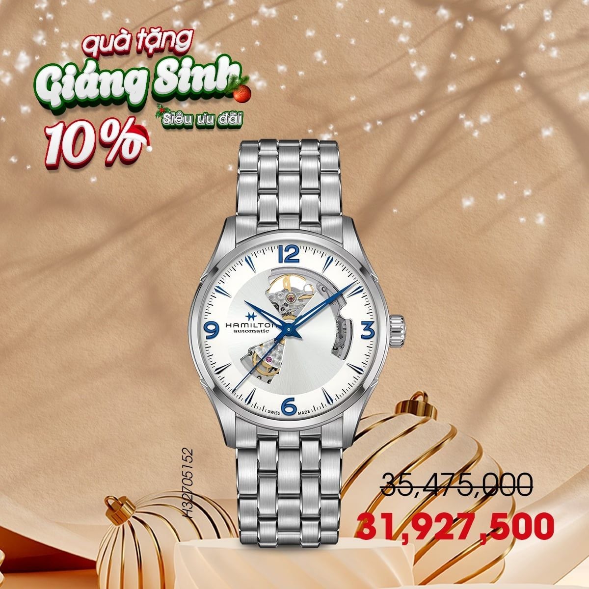 Dịp lễ Noel năm nay, khi mua đồng hồ Hamilton quà tặng tại hệ thống Donghochinhhang.com, khách hàng được ưu đãi giảm trực tiếp 10%, tặng kèm bảo hiểm 5 năm với quyền lợi vượt trội về sửa chữa, bảo trì và thay linh kiện. Ngoài ra, quà tặng bình giữ nhiệt Hamilton chính hãng sẽ tăng thêm giá trị sang trọng cho món quà.