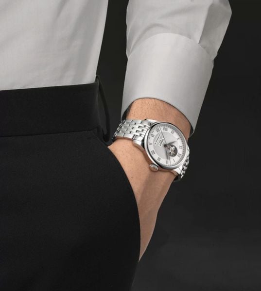 Tissot Le Locle Powermatic 80 Open Heart T006.407.11.033.02: Đây là một trong những mẫu dress watch biểu tượng của Tissot, với ô “Open Heart” ở vị trí 12 giờ để lộ phần máy Powermatic 80 – máy tự động trữ cót lên tới 80 giờ. Vỏ và dây là thép nguyên khối 316L, mặt số bạc cùng bộ cọc số La Mã, mang lại cảm giác sang trọng, lịch lãm nhưng vẫn giữ được nét hiện đại, trẻ trung trong phân khúc Thụy Sĩ tầm trung.