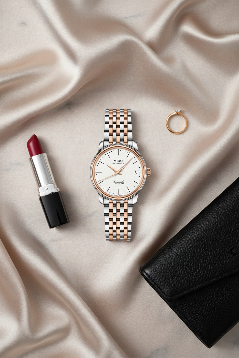➡️ Nhận định: Nếu Longines hướng đến vẻ đẹp “thanh lịch vượt thời gian”, thì Mido lại toát lên nét “tân cổ giao duyên”. Trong môi trường công sở, cả hai đều chiếm ưu thế nhờ vẻ sang trọng, tinh tế và dễ phối đồ.