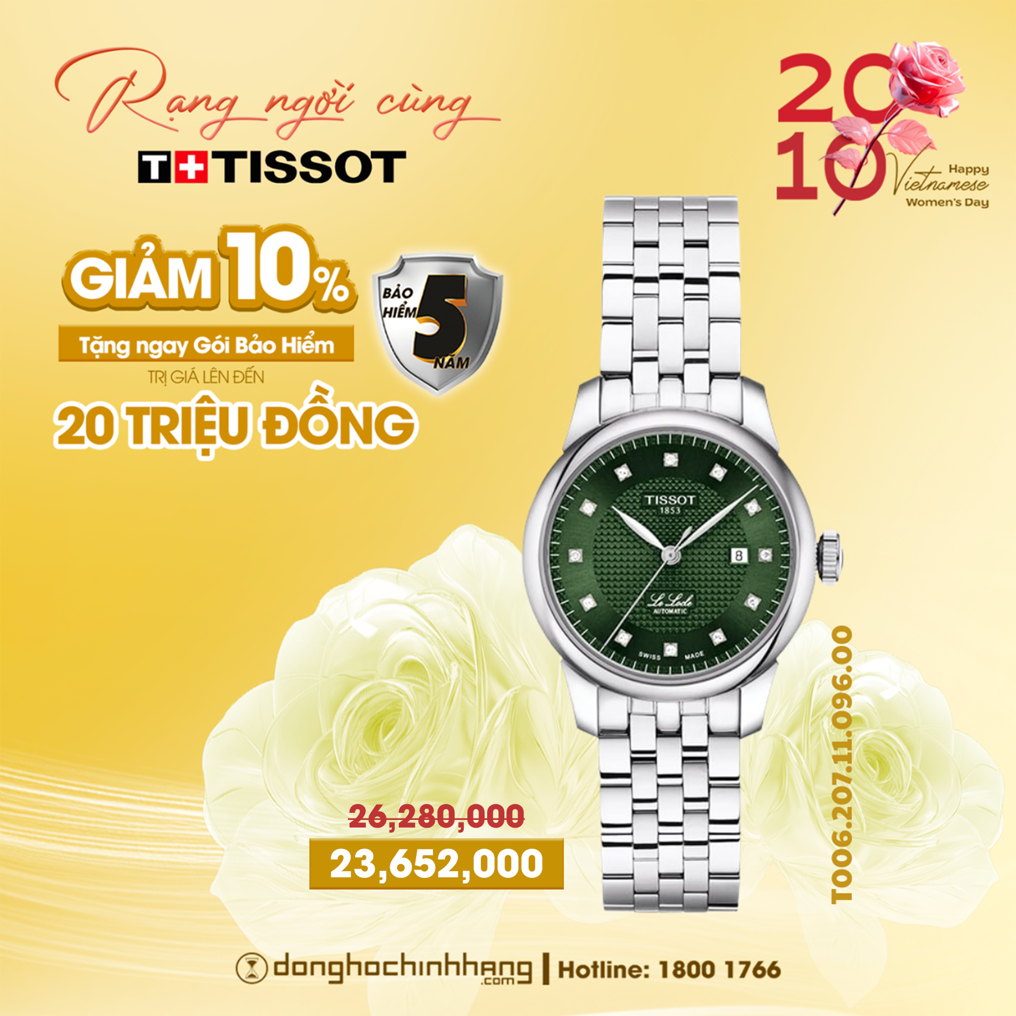 5. Tissot Le Locle Automatic Lady T006.207.22.036.00 – Vẻ đẹp tỏa sáng như chính tên gọi