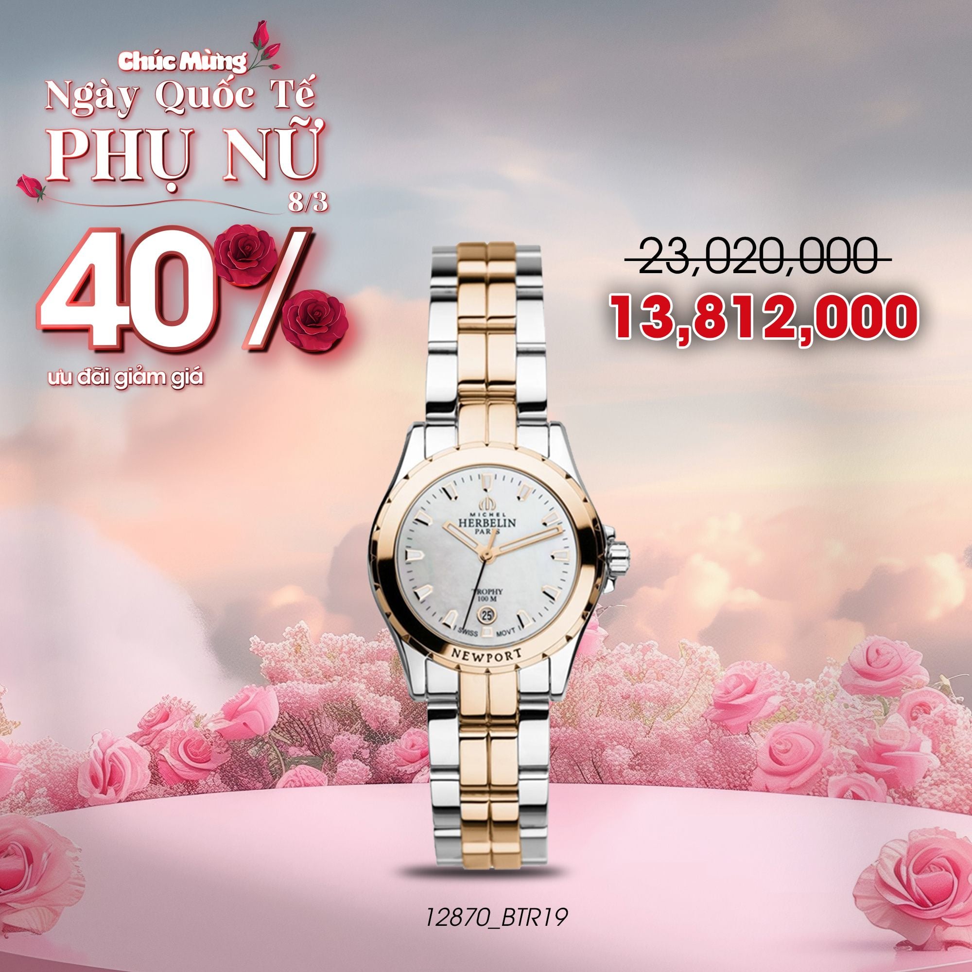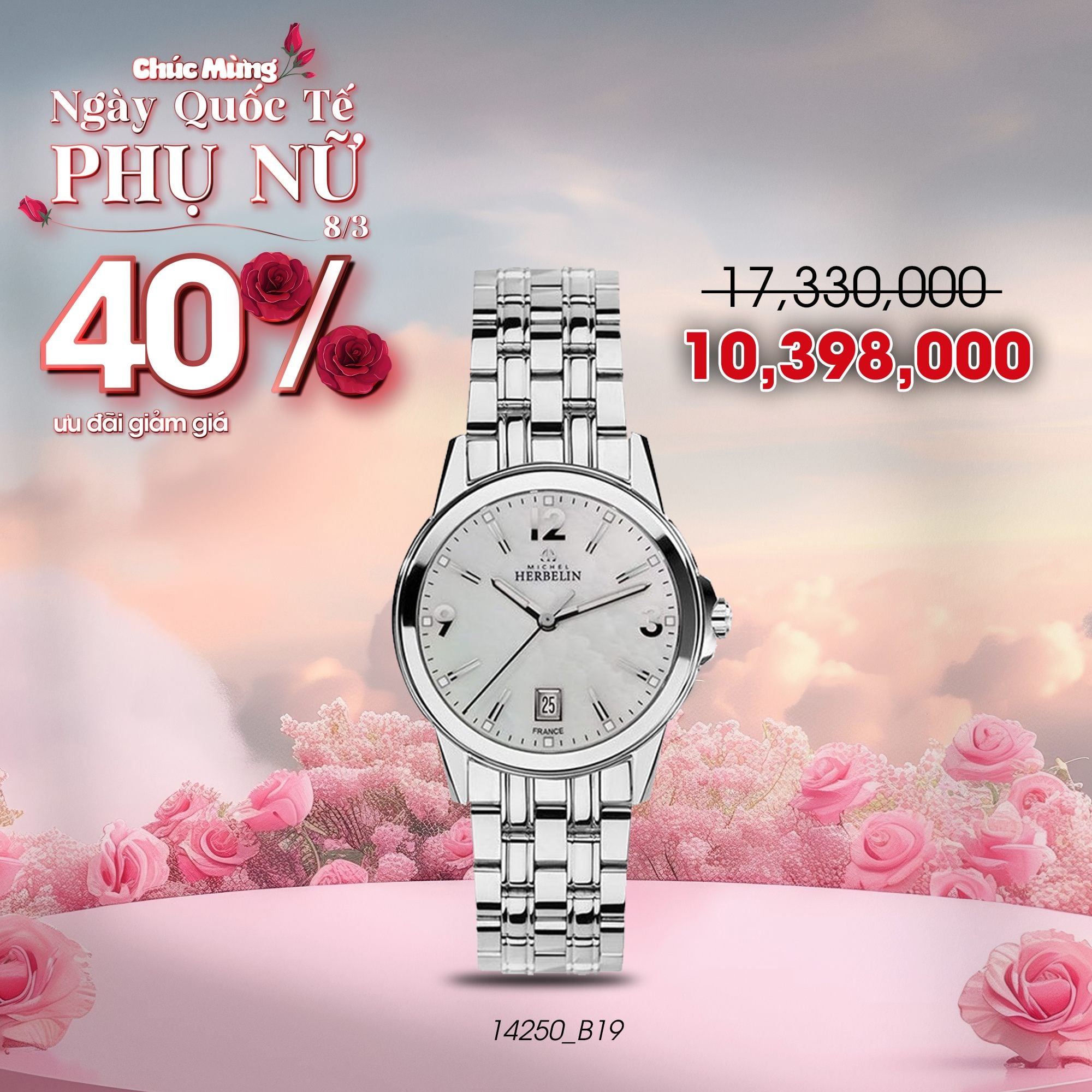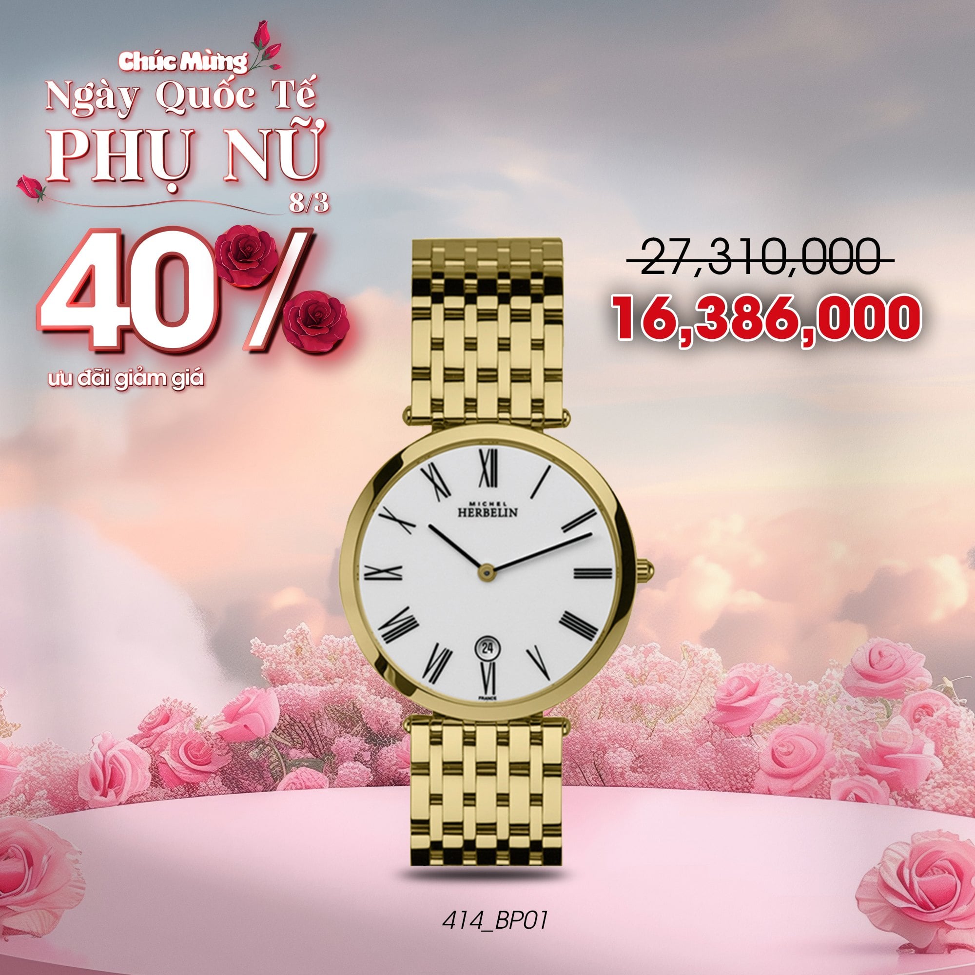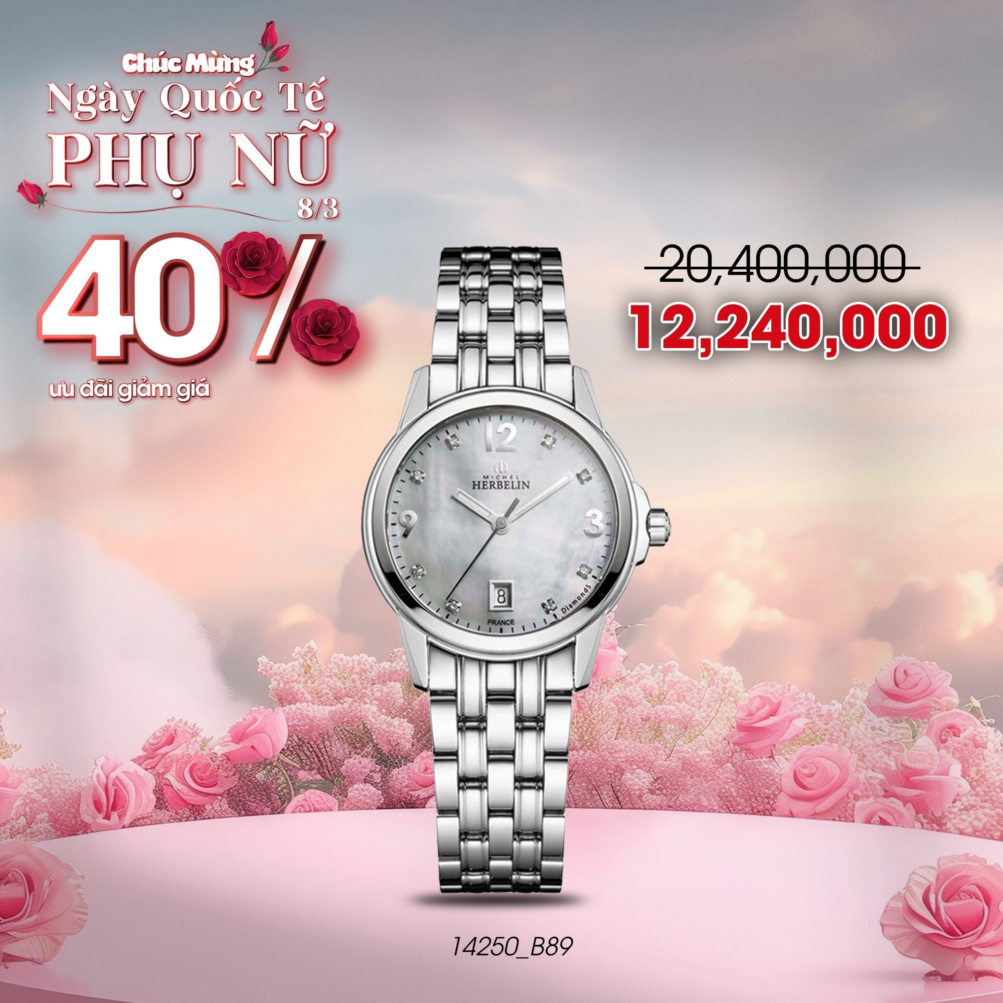 8/3 là dịp để tôn vinh phái đẹp. Và thật ý nghĩa hơn khi dành tặng người phụ nữ bạn yêu thương một món quà vừa sang trọng, vừa đậm chất nữ tính như mẫu đồng hồ thời trang Michel Herbelin. Nhân dịp này, Donghochinhhang.com dành tặng bạn ưu đãi đặc biệt giảm 40% trên toàn bộ dòng sản phẩm, giúp bạn dễ dàng sở hữu một món quà hoàn hảo cho chính mình hoặc những người phụ nữ quan trọng trong cuộc đời. Đừng bỏ lỡ cơ hội này để tỏa sáng cùng Michel Herbelin! Tôn Vinh Phái Đẹp – Món Quà Ý Nghĩa Cho Ngày Quốc Tế Phụ Nữ 8/3.
