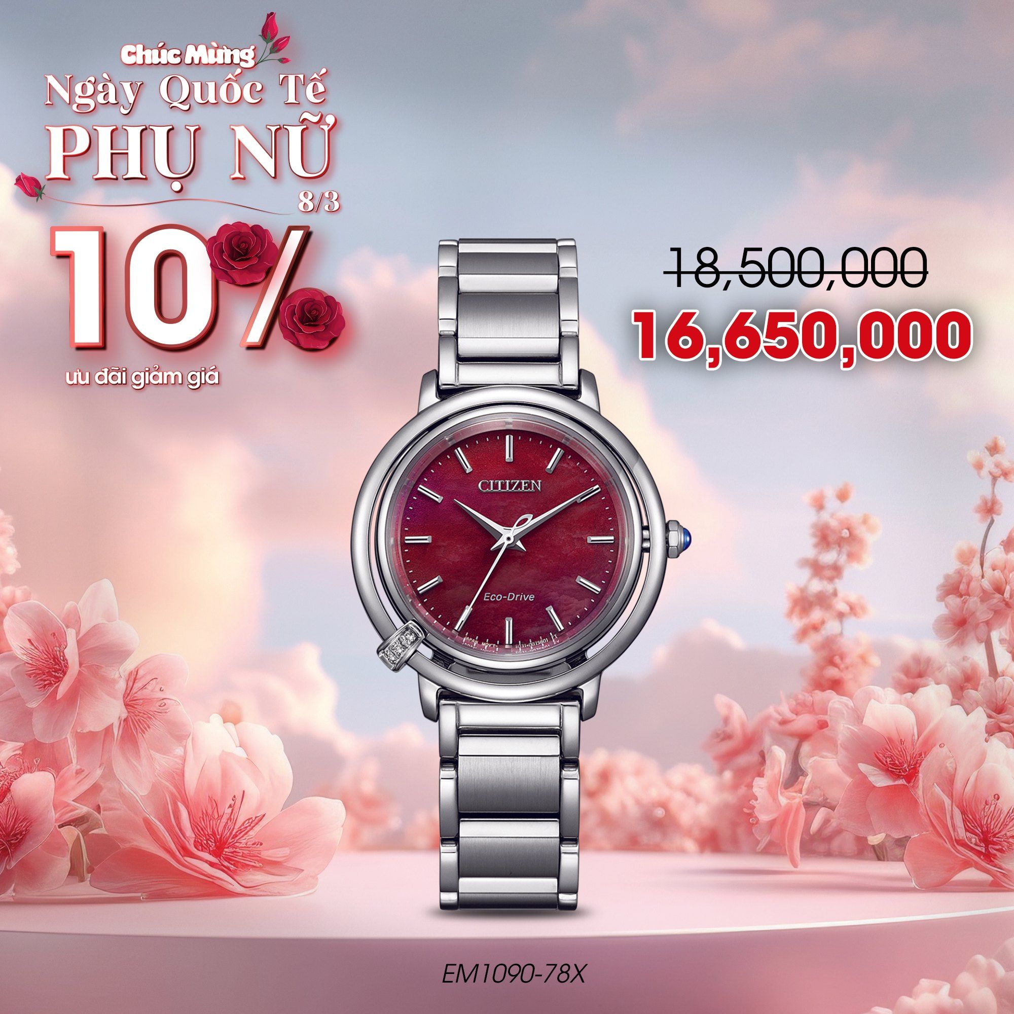 Nhân dịp 8/3, các thương hiệu trong hệ thống có nhiều chương trình hấp dẫn dành riêng cho chị em phụ nữ – là cơ hội tốt để chọn lựa một chiếc đồng hồ yêu thích làm quà tặng với giá trị ưu đãi lớn: