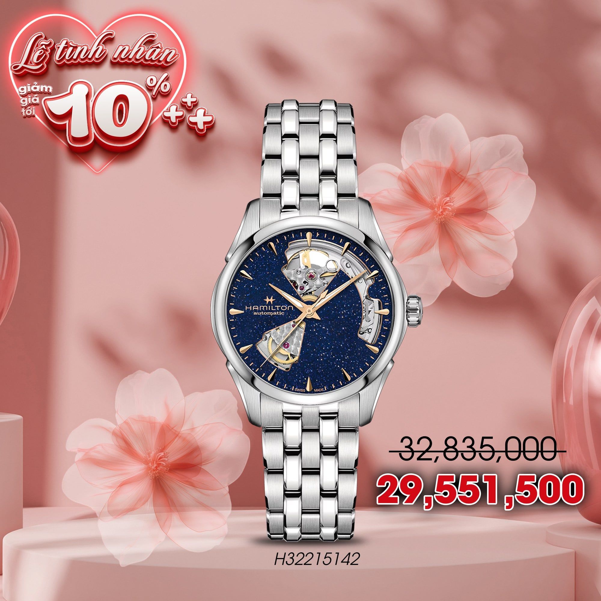 1. Hamilton Open Heart H32215142 gây ấn tượng với thiết kế open heart độc đáo, vừa nữ tính vừa mang chiều sâu kỹ thuật. Chi tiết open heart cho phép nhìn thấy chuyển động của bộ máy cơ, mặt dial xanh navy ánh lấp lánh tạo cảm giác sống động và khác biệt. Đây là lựa chọn dành cho những cô gái yêu sự tinh tế nhưng vẫn muốn có điểm nhấn cá tính.