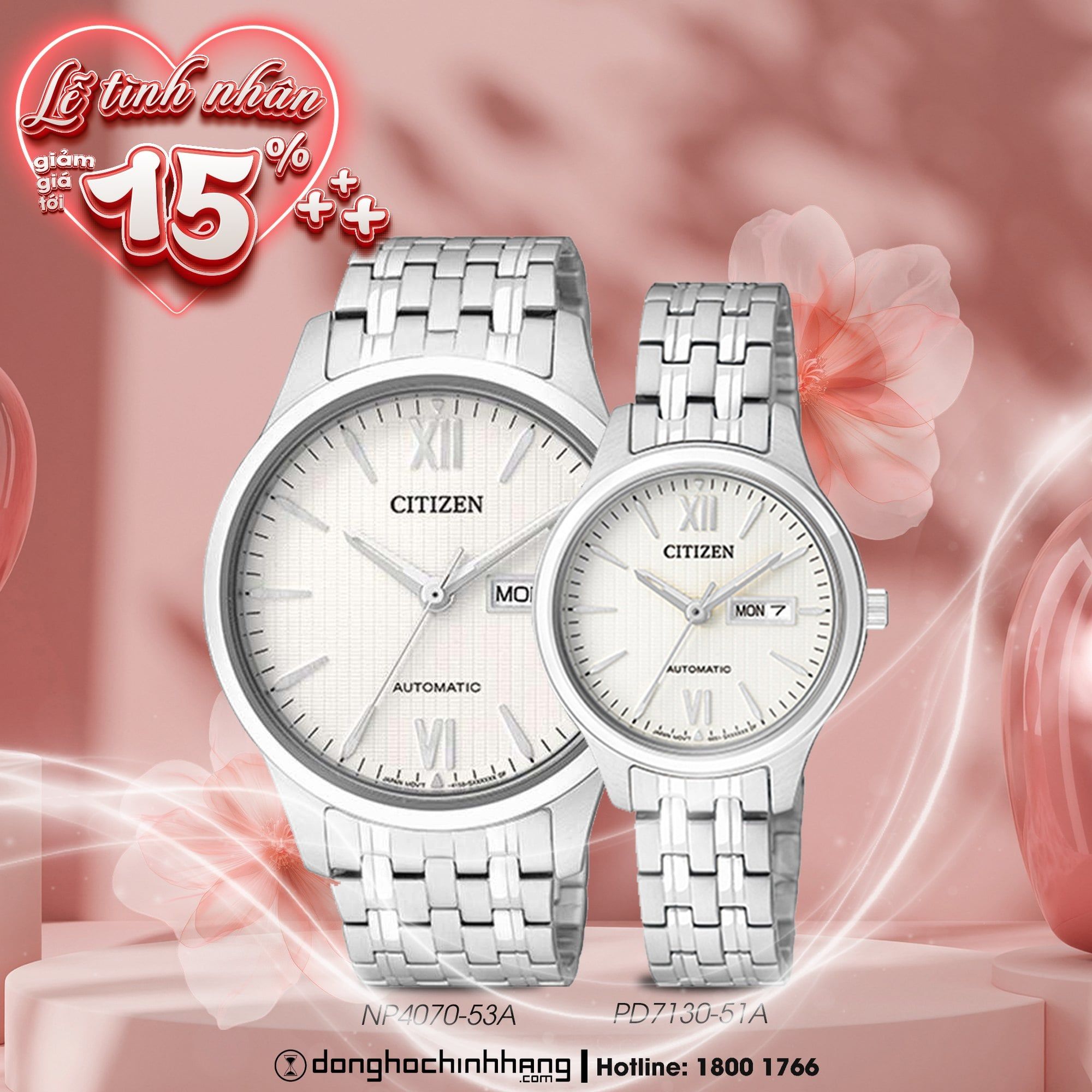 1. Citizen Mecha NP4070-53A và PD7130-51A là cặp đồng hồ mang tinh thần cổ điển pha chút hiện đại, phù hợp với những cặp đôi yêu giá trị truyền thống. Thiết kế dây thép gọn gàng, bộ máy automatic tạo nên sự kết nối thú vị giữa kỹ thuật và cảm xúc. Đây là lựa chọn dành cho các cặp đôi trân trọng chiều sâu và sự bền bỉ.