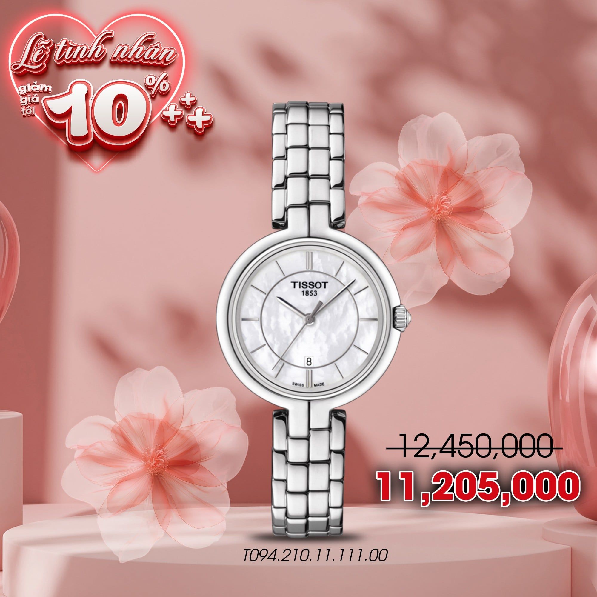 2. Tissot Flamingo T094.210.11.111.00 lại mang vẻ đẹp mềm mại và thanh thoát, đúng với tinh thần của những cô gái yêu phong cách nhẹ nhàng. Mặt số khảm xà cừ kết hợp cùng thiết kế tối giản, gọn gàng giúp mẫu đồng hồ này dễ dàng trở thành phụ kiện hàng ngày, đồng thời vẫn đủ tinh tế để làm quà tặng Valentine ý nghĩa.