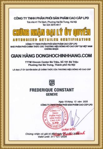 Frederique Constant là thương hiệu đồng hồ Thụy Sĩ nổi bật với triết lý “accessible luxury” – mang đến giá trị cao cấp trong tầm giá hợp lý. Hãng ghi dấu ấn với các thiết kế thanh lịch, cổ điển và đậm chất truyền thống Genève. Điểm mạnh của Frederique Constant nằm ở khả năng tự sản xuất bộ máy in-house, thể hiện trình độ chế tác đáng nể. Đồng hồ mang lại sự cân bằng giữa thẩm mỹ và kỹ thuật. Đây là lựa chọn cho khách hàng yêu đồng hồ cơ tinh tế nhưng thực tế. Frederique Constant phù hợp với phong cách doanh nhân hiện đại. Khách hàng hoàn toàn yên tâm khi mua sắm với giấy chứng nhận chính hãng được cung cấp đầy đủ tại hệ thống.
