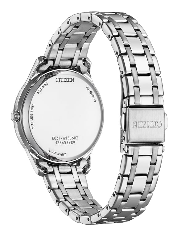 Eco-Drive/ Hấp thụ năng lượng từ ánh sáng | Nữ | 34.00 x 34.00mm | 7.30mm | Thép không gỉ 316L | Kính khoáng | 5 bar (50m)