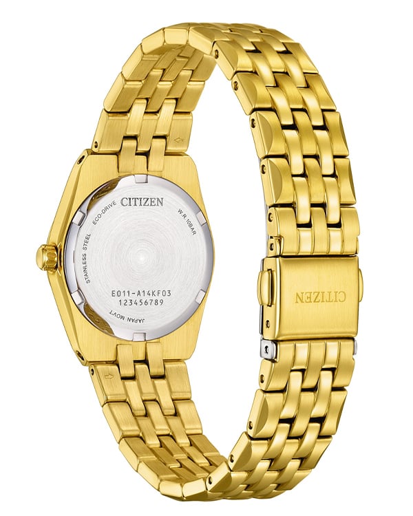 Eco-Drive/ Hấp thụ năng lượng từ ánh sáng | Nữ | 27.70 x 27.70mm | 8.80mm | Thép không gỉ 316L/ Mạ vàng công nghệ PVD | Kính khoáng | 10 bar (100m)