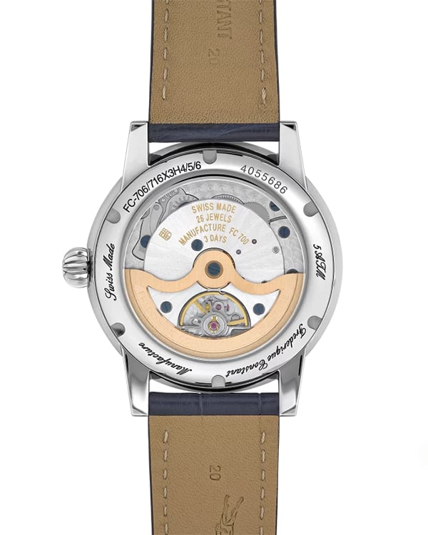 Đồng hồ được trang bị bộ máy in-house FC-716, là bộ máy cơ tự động với khả năng dự trữ năng lượng lên đến 72 giờ. Bộ máy này tích hợp chức năng lịch ngày và lịch tuần trăng, cho phép điều chỉnh hoàn toàn thông qua núm vặn. Tần số dao động của bộ máy là 28.800 dao động/giờ, đảm bảo độ chính xác cao và hoạt động ổn định.