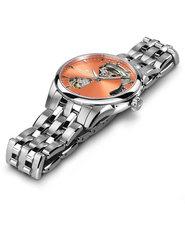 Hamilton Jazzmaster Open Heart Lady Auto H32215100 là một phần của dòng Jazzmaster và thiết kế thanh lịch của nó làm cho nó phù hợp cho một dịp đặc biệt trong công ty, nhưng thoải mái để đeo hàng ngày. Nhờ Open Heart, mẫu này cung cấp một mặt số trong suốt trên bánh đà .