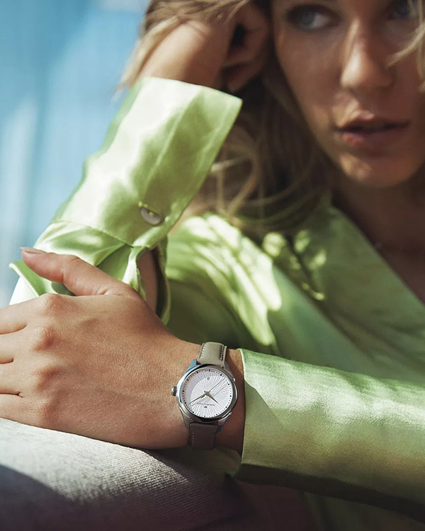 Những đường nét duyên dáng của mặt đồng hồ tạo nên ảo giác chuyển động. Chiếc đồng hồ tinh xảo 30mm này kết hợp với vòng đeo tay thanh lịch hoặc dây đeo bằng da mềm sẽ nâng tầm mọi phong cách.