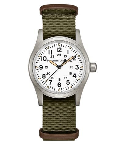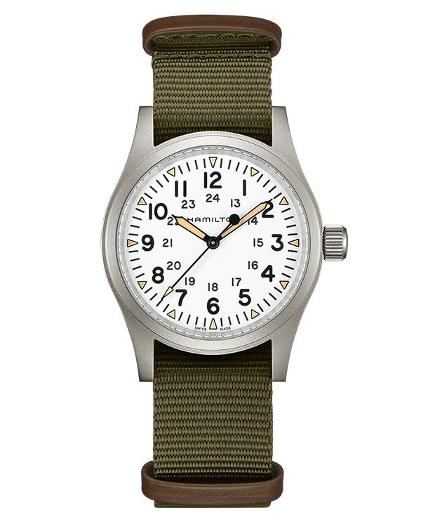 H69439411 thuộc bộ sưu tập Khaki Field. Bộ sưu tập này là sự tái hiện trung thực của tiền thân những năm 1960 ban đầu và đúng với di sản quân sự của Hamilton: Vỏ thép không gỉ size mặt 38 mm, ba kim hiển thị, mặt số màu trắng, các vạch chỉ số hình tam giác với màu radium, vạch chỉ số và kim được phủ dạ quang Super-LumiNova®, dây đeo NATO bền bỉ. Bởi thế những mẫu đồng hồ thuộc bộ sưu tập này thật sự là một lựa chọn được ưu tiên của phái mạnh.