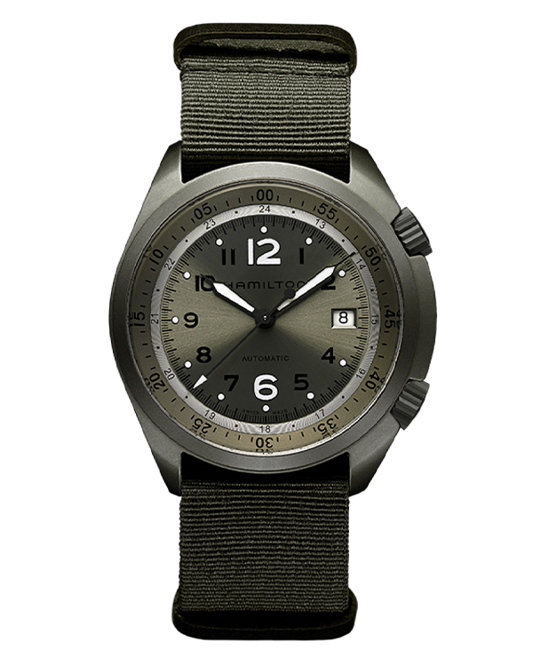H80405865 là một chiếc đồng hồ dành riêng cho ngành hàng không. Khaki Pilot Pioneer Aluminium được chế tác có vỏ bằng Aluminum/ Nhôm màu xanh lá cây, tạo cảm giác thoải mái và trọng lượng nhẹ quanh cổ tay. Nó được khen ngợi bởi bộ máy Hamilton H-10 độc quyền với khả năng dự trữ năng lượng điển hình là 80 giờ. Dây đeo nato được phủ một phần da với khóa chốt bằng nhôm tạo thêm nét chất lượng cho chiếc đồng hồ.