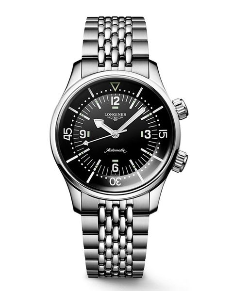 L3.764.4.50.6 gây ấn tượng ngay lập tức nhờ có hai núm vặn và khung bezel xoay bên trong. LONGINES LEGEND DIVER mới đang tái tạo bề mặt với đường kính 39mm, trung thành với mẫu nguyên bản năm 1959 mà nó lấy cảm hứng từ đó.