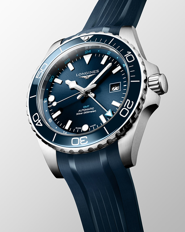 Là một mẫu đồng hồ thể thao kinh điển đích thực, dòng HydroConquest đã được mở rộng với các mẫu đồng hồ có chức năng GMT. Kết hợp giữa sự tinh tế và kỹ thuật đỉnh cao, HydroConquest GMT lấy cảm hứng từ thế giới thể thao dưới nước, đồng thời kế thừa kinh nghiệm lâu đời của LONGINES trong việc phát triển đồng hồ đa múi giờ. Với khả năng chống nước lên đến 30 bar (300 m), chiếc đồng hồ GMT này được trang bị bộ máy độc quyền của LONGINES, được trang bị dây tóc cân bằng silicon và khả năng chống từ trường.