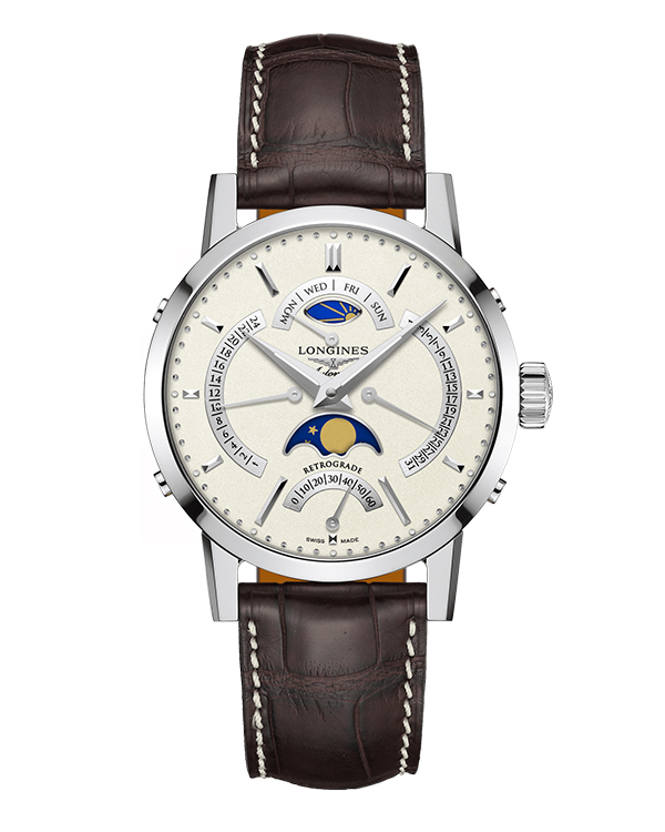 Cùng là những tính năng thể hiện giờ, phút, giây, ngày v.v. nhưng cách sắp đặt của Longines đã khiến những điều tưởng chừng như bình thường lại trở thành một tuyệt tác với lối thiết kế đối xứng đến hoàn hảo. Ở vị trí 12 biểu thị lịch thứ. Vòng cung bên phải thể hiện lịch ngày. Kim giây được thể hiện cách điệu ở vị trí 6 giờ. Và cuối cùng là việc hiển thị múi giờ thứ 2 - 24 giờ ở bên trái của mặt số. Chính thiết kế này đã tôn vinh những giá trị của thời gian, dù chỉ là giây, là phút.