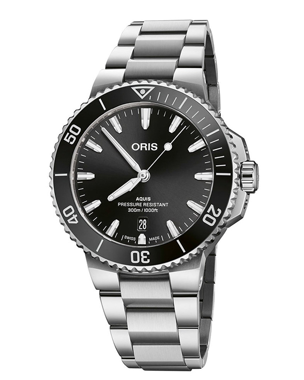 Mẫu đồng hồ thuộc dòng sản phẩm Oris Aquis xuất hiện vào năm 2011 như một sự phát triển của những chiếc đồng hồ sử dụng được dưới nước của thương hiệu Oris. Chiếc đồng hồ lặn này chính là một trong những sự sáng tạo kinh điển trong nền công nghiệp sản xuất đồng hồ của thế giới. Dù là dòng đồng hồ lặn nhưng Aquis lại mang phong cách rất hiện đại và hợp thời. Aquis có sẵn với nhiều kích cỡ vỏ như 36.5mm, 41.5mm, 43,5mm. Các tính năng được chia sẻ của tất cả các mẫu Aquis Date bao gồm vỏ chống nước ở độ sâu 300m, núm vặn vặn vít, viền bezel lặn một chiều (trừ phiên bản nạm kim cương), cửa sổ lịch ngày được đặt trên mặt số ở góc 6 giờ.