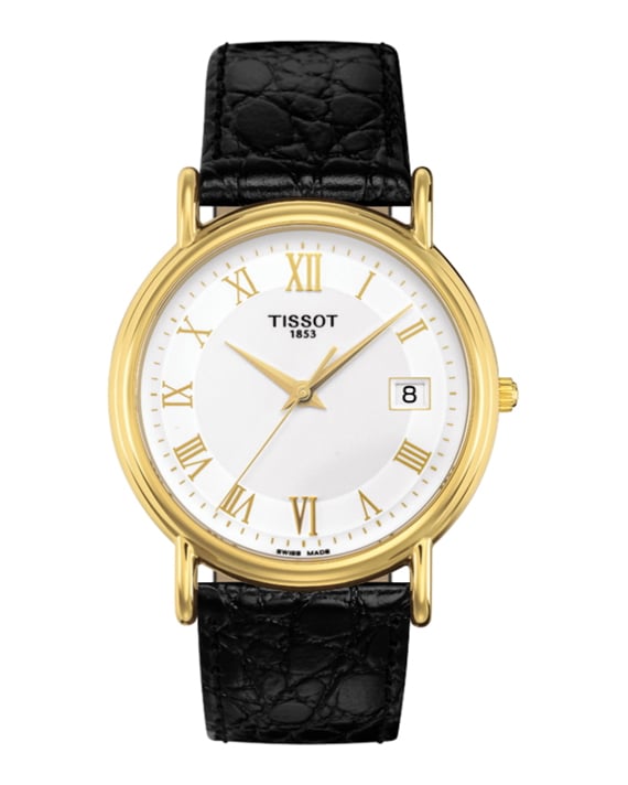Đồng hồ Tissot T71.3.429.13 là chiếc đồng hồ thuộc bộ sưu tập Tissot Carson Quartz 18K Gold/T-Gold của dòng T-Gold. Chất liệu vàng khối ở vỏ là đặc trưng của bộ sưu tập này. Tissot Carson Quartz 18K Gold/T-Gold không quá màu mè nhưng thực sự nổi bật, không quá cầu kỳ nhưng lại đẳng cấp. Chất liệu vàng khối tạo nên sự sang trọng và giá trị thật sự cho bộ sưu tập. Bất kỳ ai sử dụng sản phẩm thuộc Tissot Carson Quartz 18K Gold/T-Gold đều cảm thấy hãnh diện và tự hào.